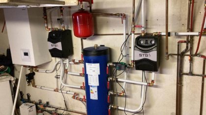 - La condensation du fluide frigorigène, alors à l’état de vapeur haute pression, permet de transmettre la chaleur à l’eau de chauffage. Le gaz repasse à l’état liquide.